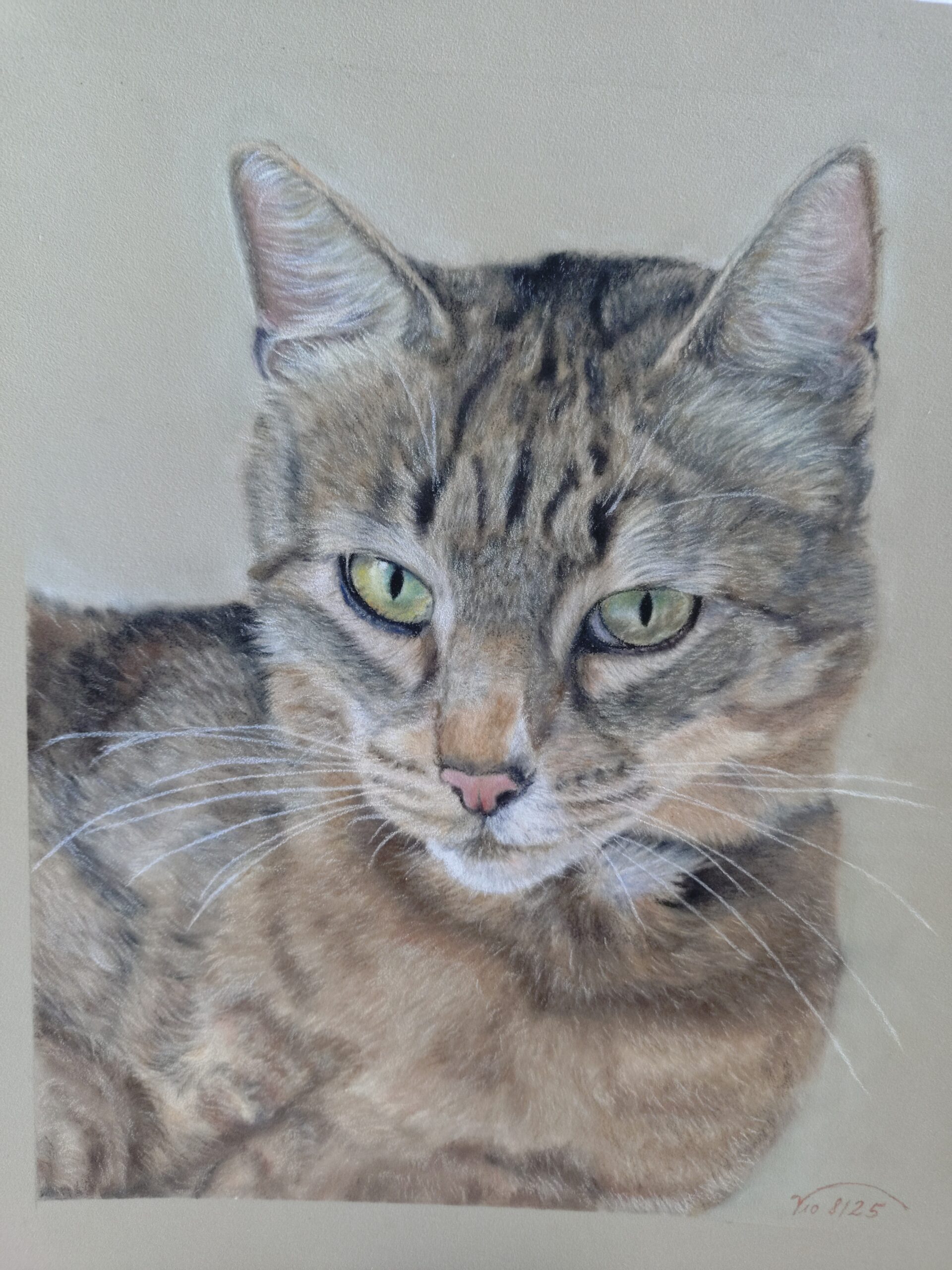 Ich habe eine Zeichnung meines von Vio gezeichneten Katers geschenkt bekommen und war richtig verblüfft, wie exakt er wiedergegeben ist. Wirklich ein wunderschönes Bild! Unverwechselbar mein Kater!