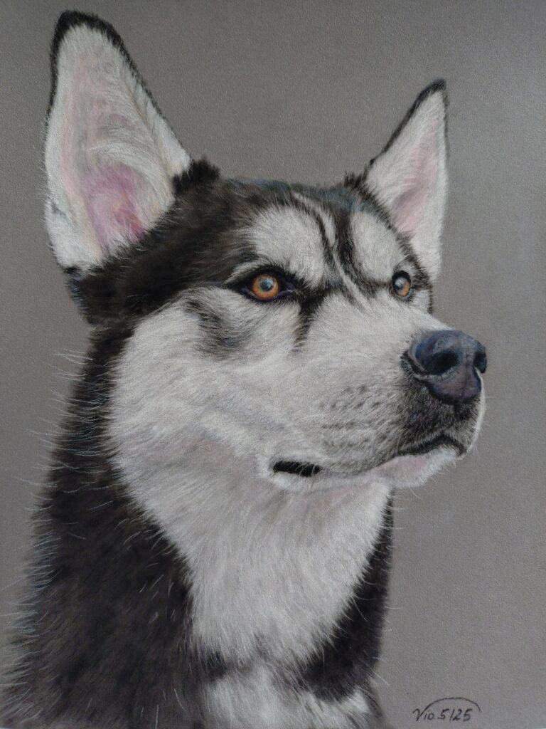 Ich habe inzwischen drei meiner Schäferhunde und zwei Dobermänner meiner Nichte von Vio zeichnen lassen . Es ist jedesmal eine Freude, wenn ich die Bilder in den Händen halte! Manchmal schickte mir Vio Fotos vom Entstehungsprozess. Da wird die Vorfreude immer größer.
